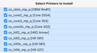 • If you are comfortable with using a script. You can create All CS Printers with a single zsh script. Save this SetCSPrinters.zsh script to your MacOS and run it in a terminal. This script requires installing the HP Printer Drivers for OS X first, as described in Step 1.