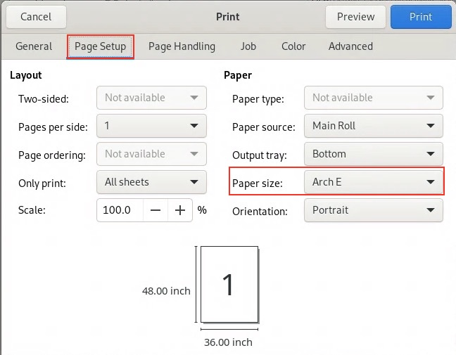 - Click Preview your job before printing. Ensure the preview shows the correct print size on the correct paper size.